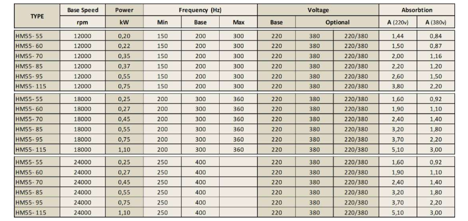 Spindle Hertz Motor HM55-70 rectangular 450W ER20 220V 18000RPM