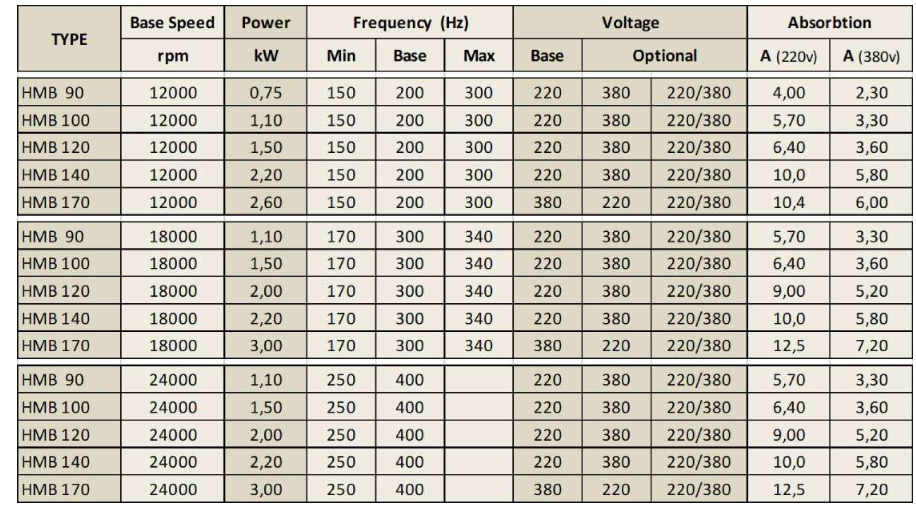 Standardul alimentarii pentru acest model este de 220V si prindere de ER16. Optional putem realiza alimentare 380V sau 220/380V si prindere ER16 sau ER20/ER25.