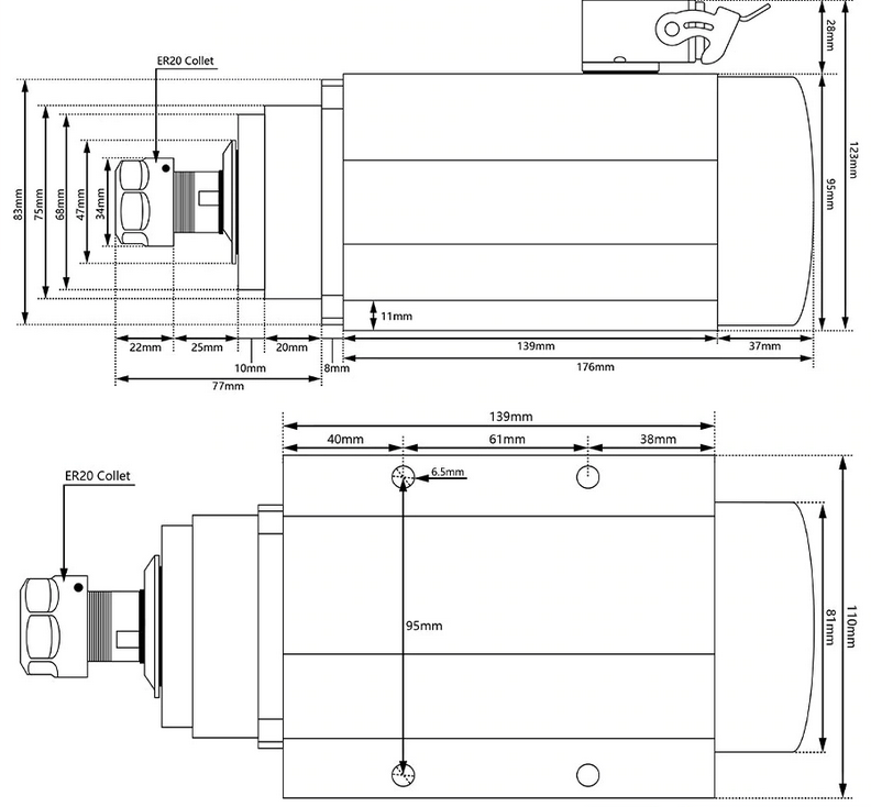 Motor frezare rectangular 1500W 1.5kW 220V racire aer si penseta prindere ER20 139x80x110mm