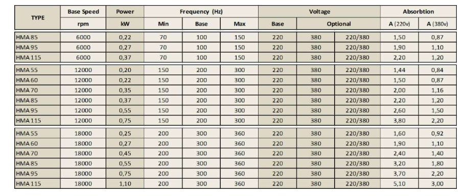 Spindle Hertz Motor HMA.XX_L16.18F-CK-2R rectangular motor tip brosa pentru frezare si diverse echipamente sau automatizari.