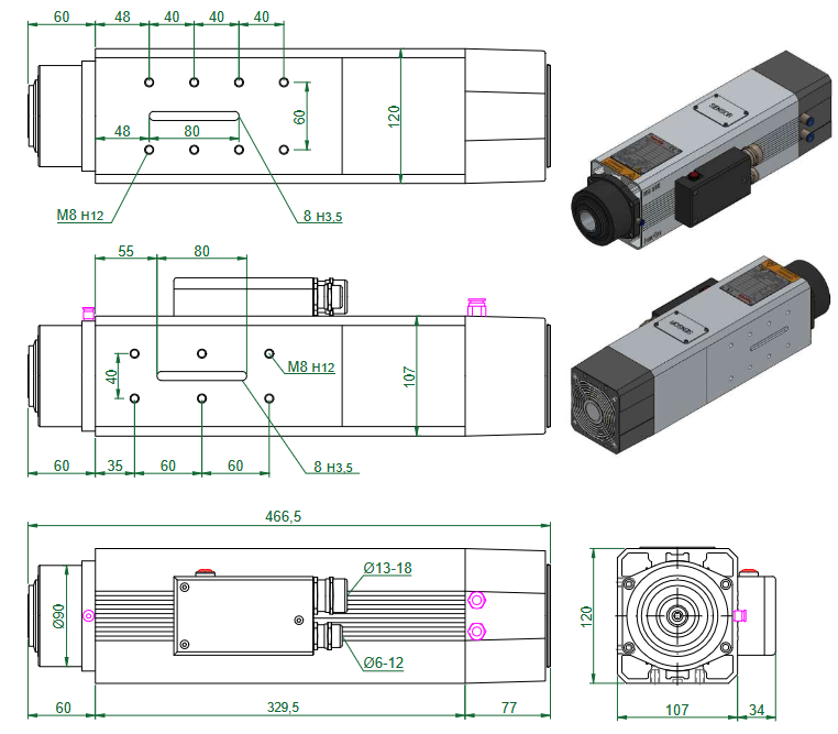 • Motorul spindle poate fi utilizat pentru gravura si taiere de materiale moi, cum ar fi lemnul, placajul de lemn, PCB, PVC, PMMA, ABS.