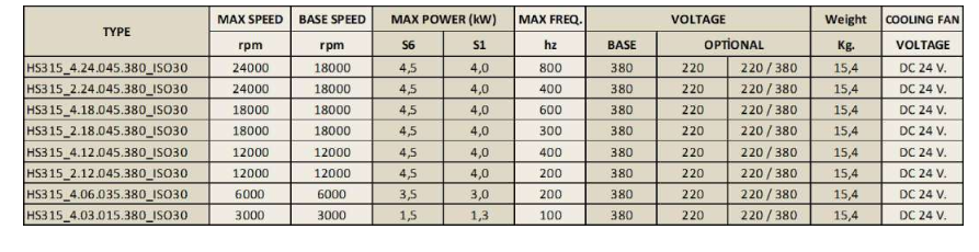 Spindle Hertz Motor HS 315 cu ATC ISO30 S6 1.5-4.5 KW 380V cu ventilator 24V